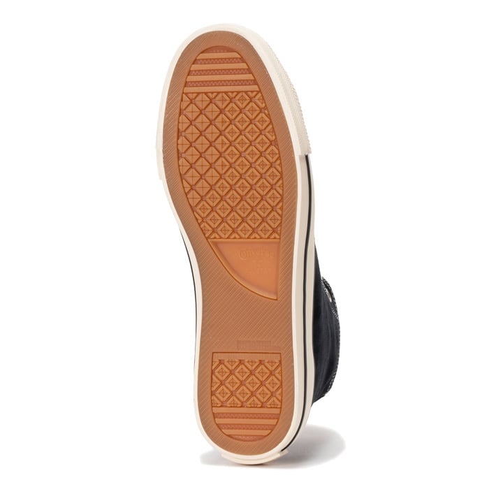 トリック時に接触の多い箇所の耐久性を向上させる為、1960~80年代のオールスターの当て布とアーチ状のステッチを外腰に再現。