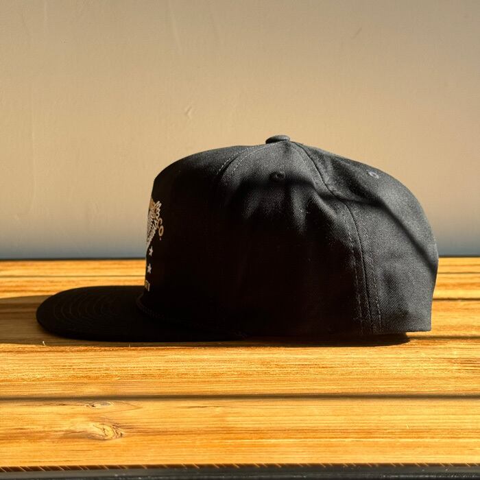 イーグルをモチーフにしたアメリカンデザインが刺繍されたスナップバックキャップ。