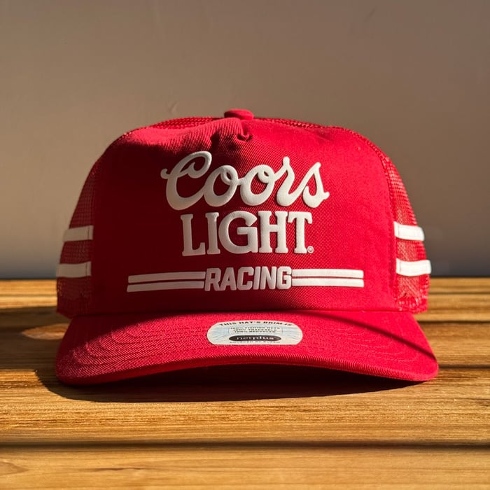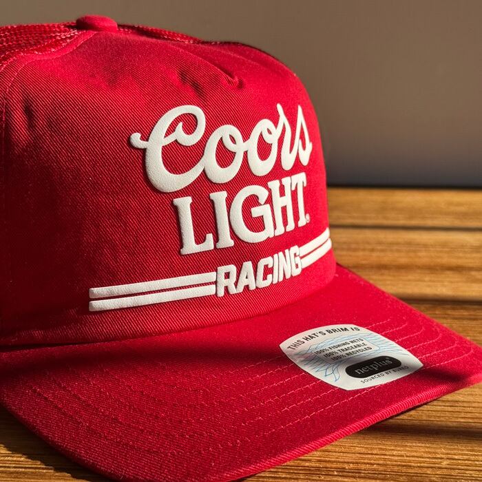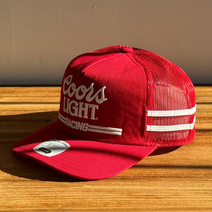レーシングストライプとヴィンテージ風のパフインクで表現された「Coors Light」ロゴをあしらっています。