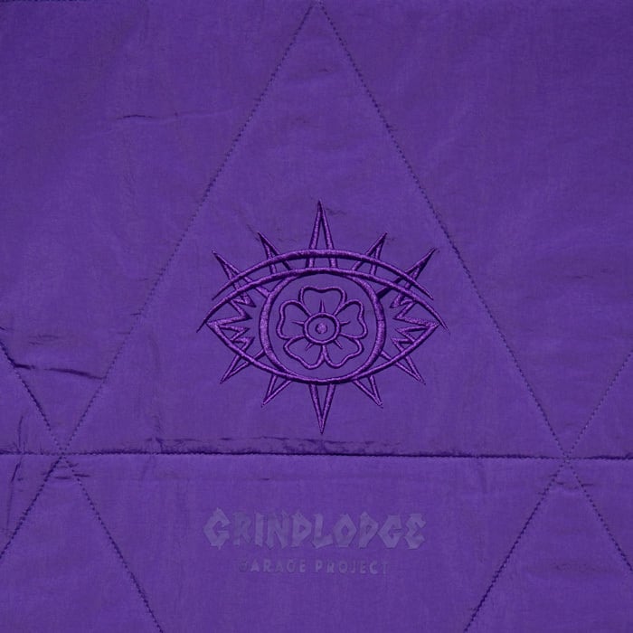 バックスタイルの中央の三角形に目の刺繍を施し、GRINDLODGEのアイコンを表現。