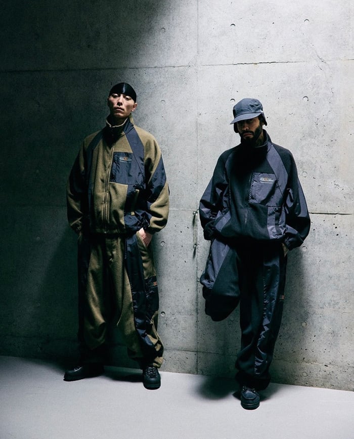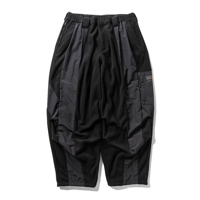 フリースとナイロンの切り替えデザインのバルーンパンツ。