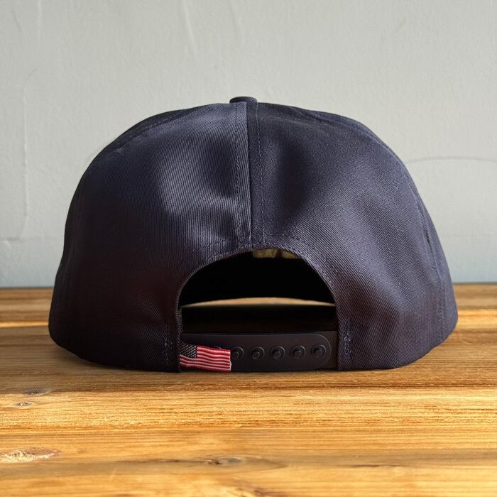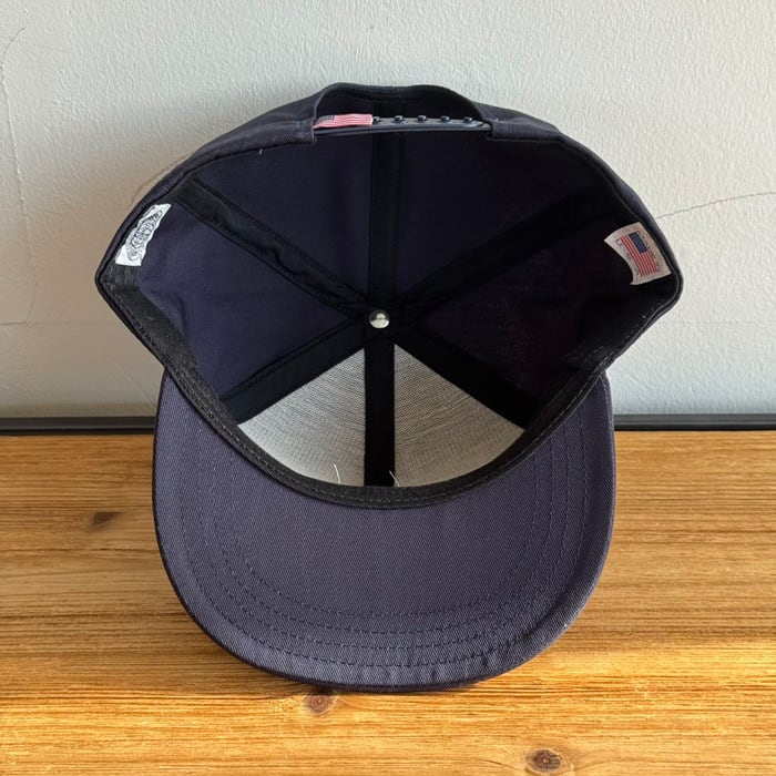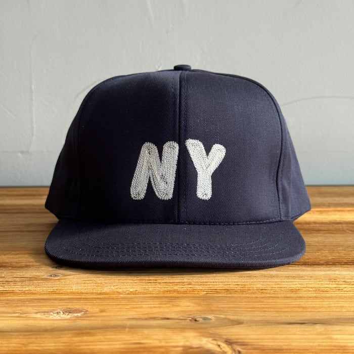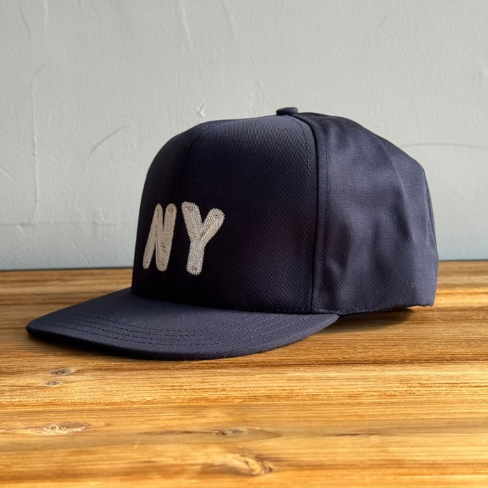 6パネルのフラットバイザーで、フロントにチェーンステッチでNYロゴが施されています。