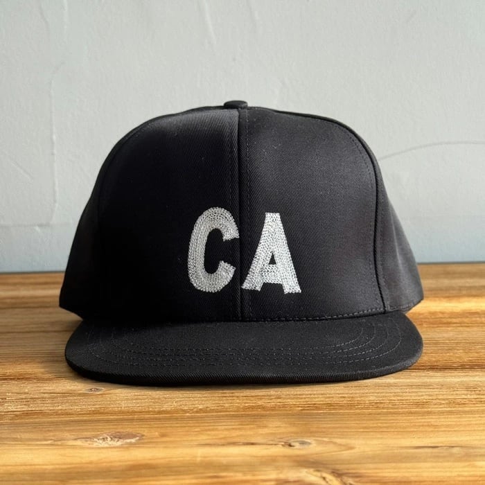 6パネルのフラットバイザーで、フロントにチェーンステッチでCAロゴが施されています。