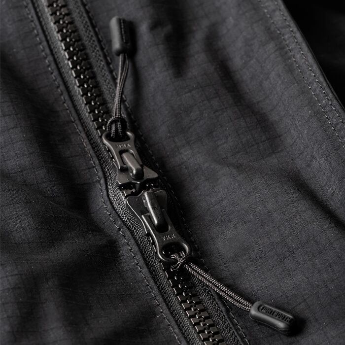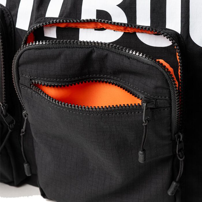 ロゴプリントの上に3つのダブルレイヤーポケットを配置。