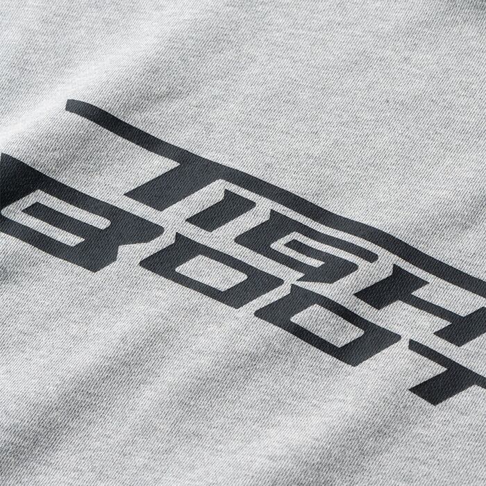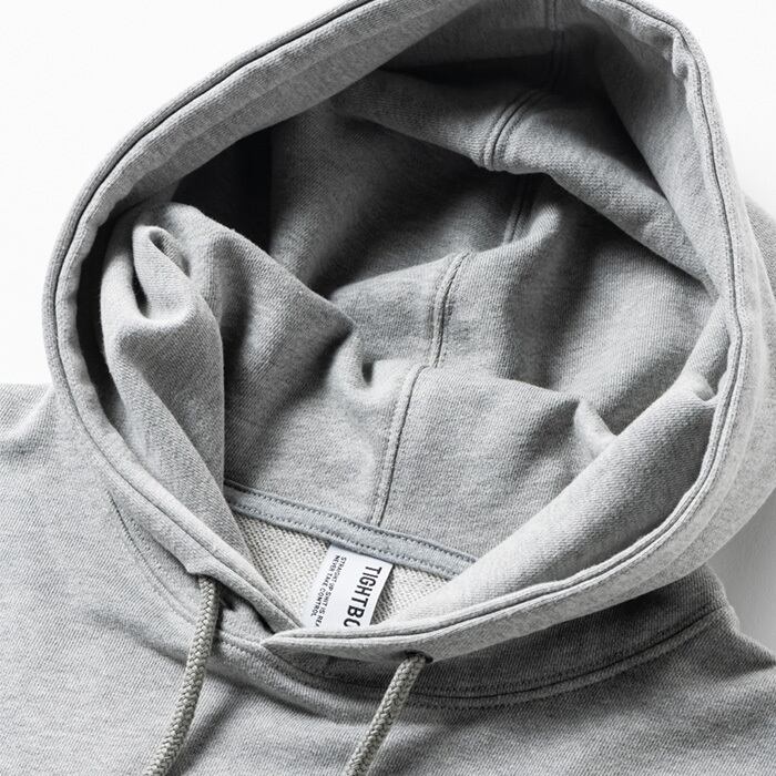 10.5 ozの裏毛スウェット生地を使用し、スピンドルのコードエンドにTIGHTBOOTHのロゴが入ります。